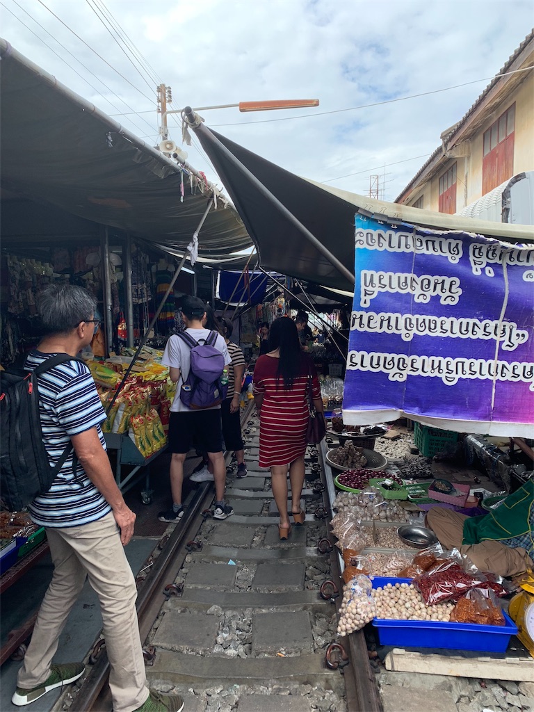 さて、僕らが見たのはメークロン駅行きの電車で14:30頃市場を通過するやつです。今度はこれの折り返しに乗って帰ります。